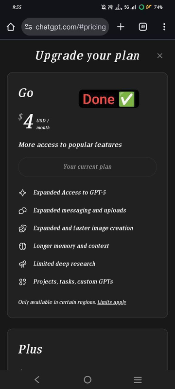 Once the payment setup is successful, your ChatGPT Go plan will be activated immediately.
