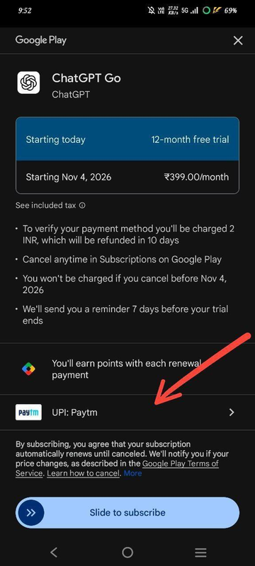 - 💸 The plan renews at ₹399/month after 12 months — cancel anytime before that.