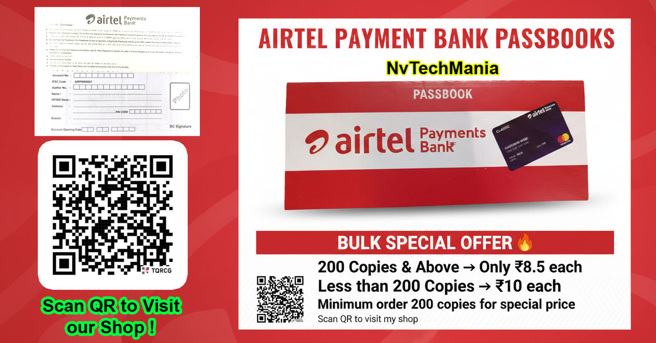 Today, Airtel Payments Bank is bringing a special limited-time offer for all its customers and partners. If you regularly purchase passbooks for your Airtel Payments Bank operations, this is the perfect time to stock up and enjoy extra benefits absolutely free!