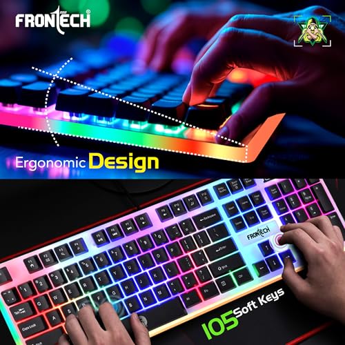 Frontech KB-0040P Wired Gaming Keyboard and Mouse Combo | USB Plug & Play | 1200 DPI Optical Mouse | 105-Key Keyboard | Compatible with Windows PCs